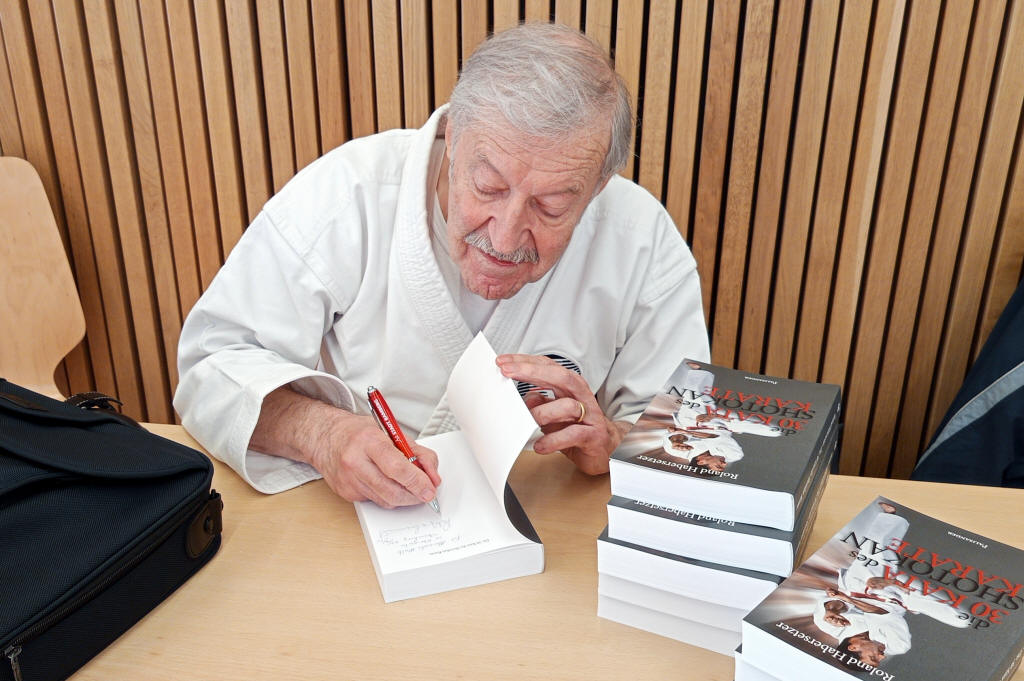 Frank Elstner (Palisander Verlag) et son épouse Anja avaient fait le déplacement depuis le Nord de l'Allemagne, pour présenter aux stagiaires allemands le nouveau livre des « 30 Shotokan Katas », que Sensei Habersetzer dédicaça sur place.