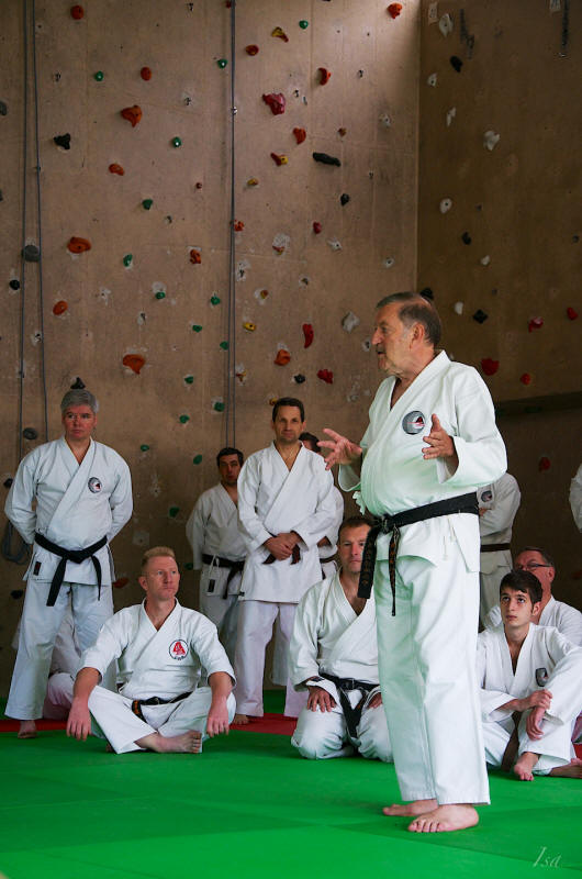 Ils furent 75 à la dernière Ecole des Cadres du CRB-IT, en cette fin de septembre 2013. Histoire de se recentrer comme chaque année sur les objectifs de l'association. Le "ne pas se battre, ne pas subir" de Shihan Roland Habersetzer est un langage humaniste que ce dernier a eu tout loisir d'illustrer avec détermination sur les tatamis du dojo de Schirmeck, près de Strasbourg. Notamment à travers son "Tengu Goshin-no-kata" et les divers séquences liant les notions de réalisme, d'efficacité, de vigilance et de contrôle. Un langage, un message et une réponse dont notre société a aujourd'hui plus que jamais besoin, en particulier dans ce qui touche à la violence, donc au registre "martial" (le vrai, pas les impostures qui ont fleuri dans l'inculture générale), qui a réuni pour ce week-end de travail et de convivialité les cadres de "Centre de Recherche Budo-Institut Tengu" venus de France, de Belgique, de Suisse, d'Allemagne... Et comme disait le Shihan, "même si elle (la société) ne le sait pas encore. Pourvu qu'il ne soit pas véritablement trop tard le jour de cette prise de conscience..."